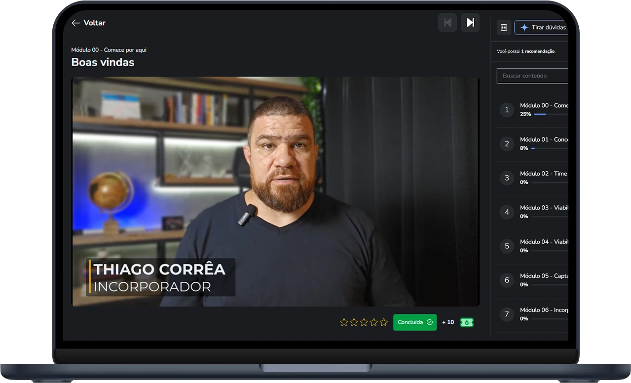 Ser um incorporador demanda uma mentalidade forte e blindada, para superar medos e agir sem dificuldade. Módulo bônus focado 100% no seu desenvolvimento empresarial e pessoal!